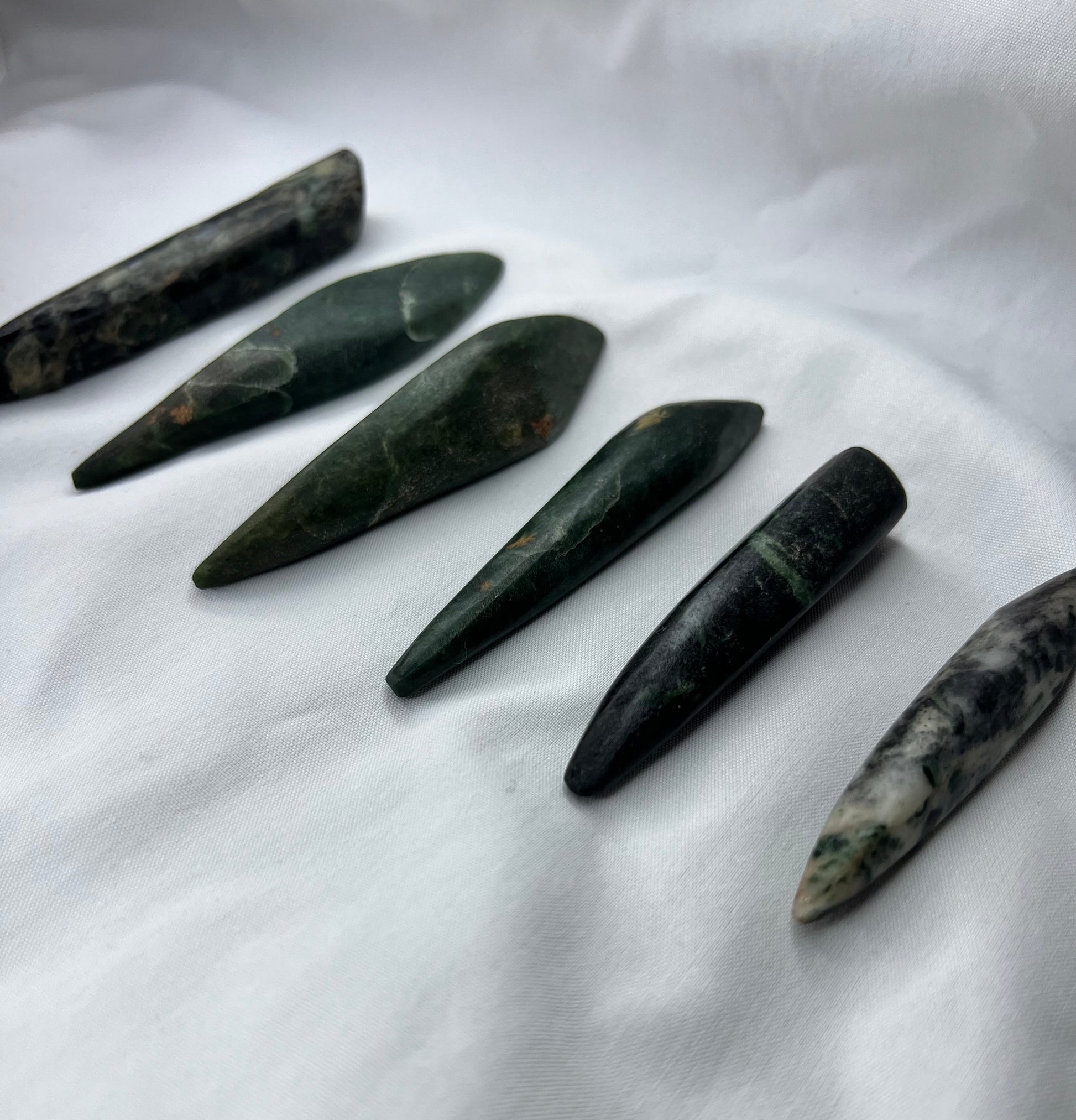 • Full Hand carved NZ Pounamu ‘spike’ stretchers