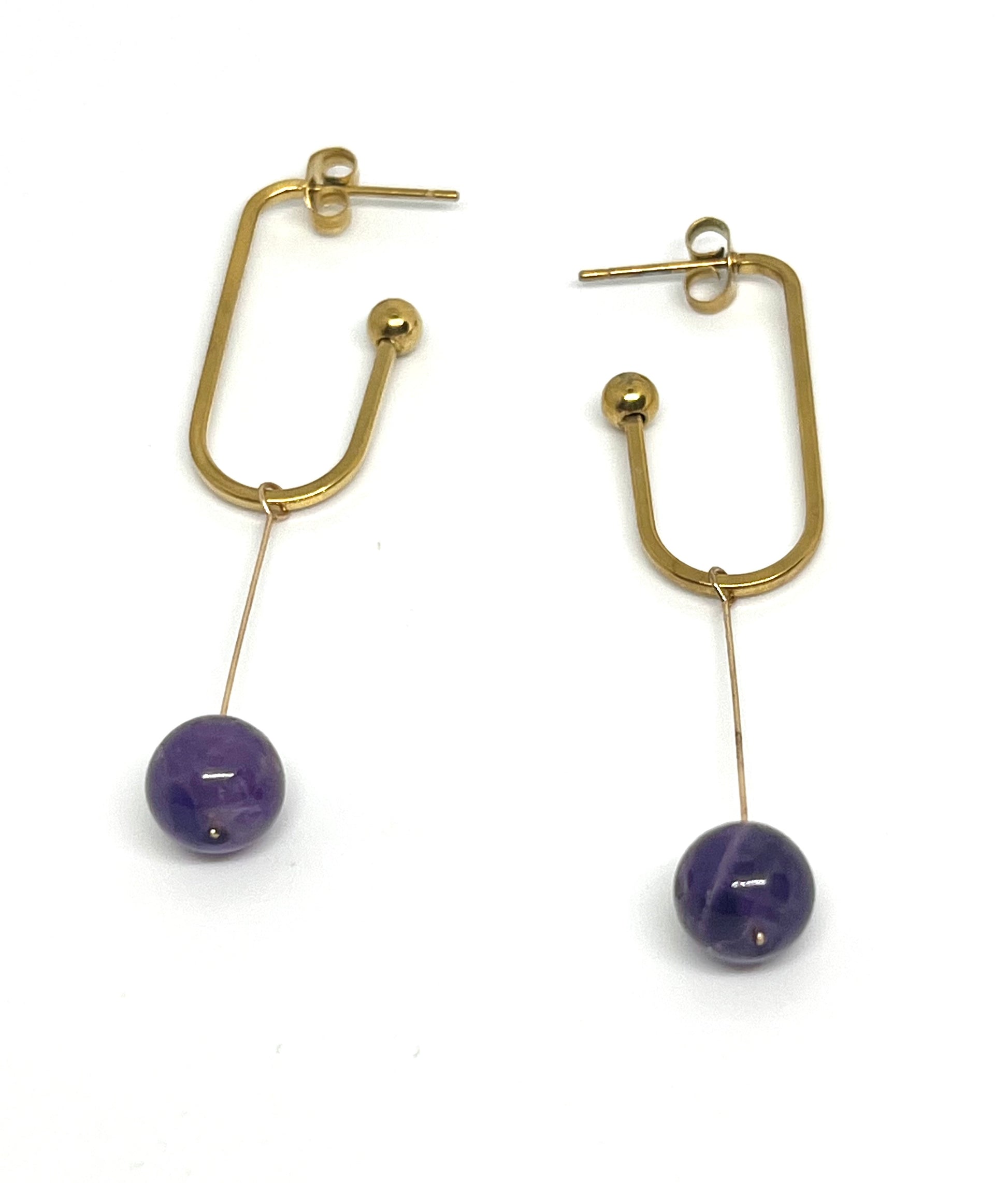 18k Gold plated hanger style earring with 12mm Amethyst ball