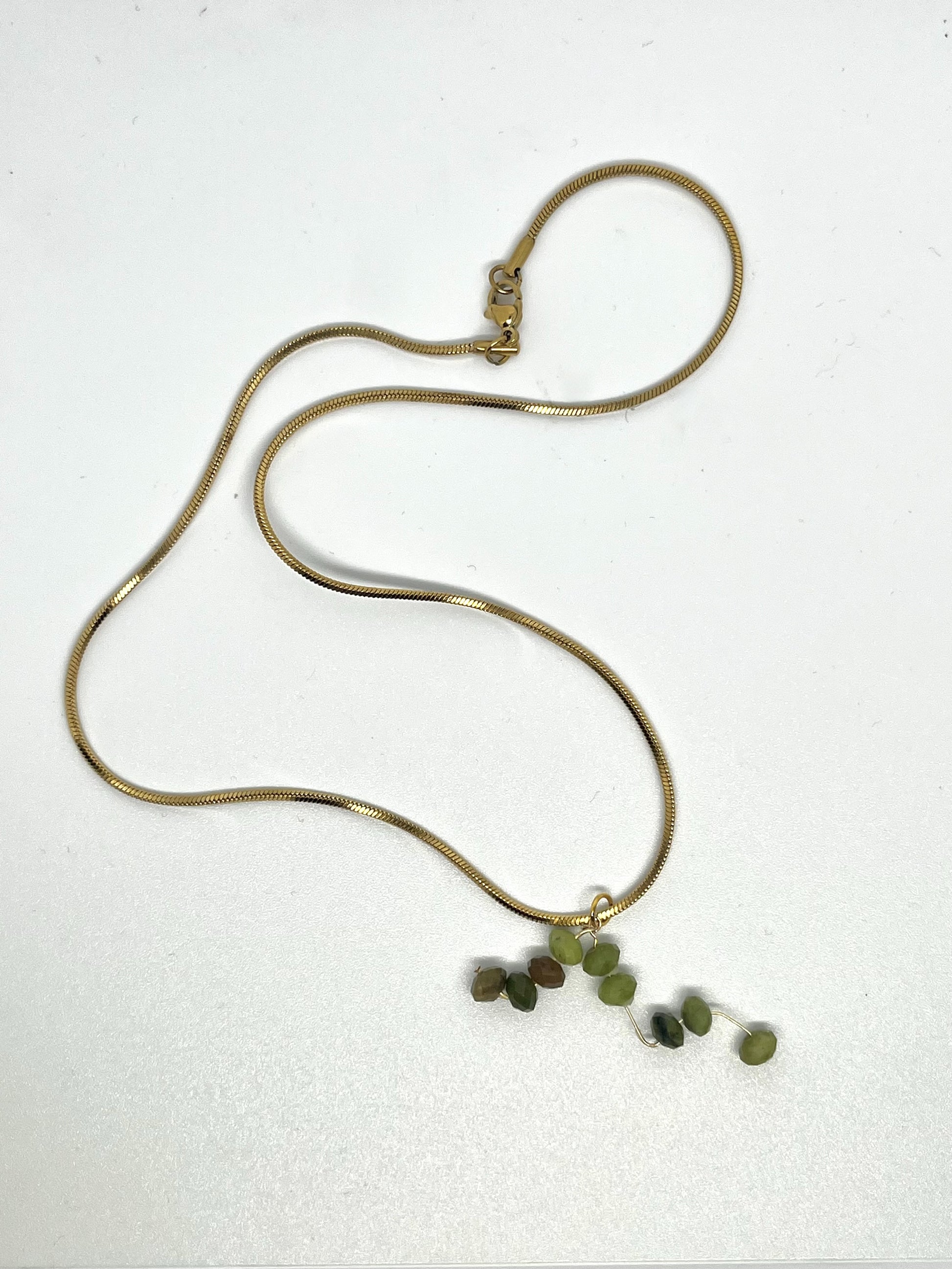 • 18k gold plated 25cm snake chain set with NZ Pounamu faceted pieces depicting Matariki constellation
