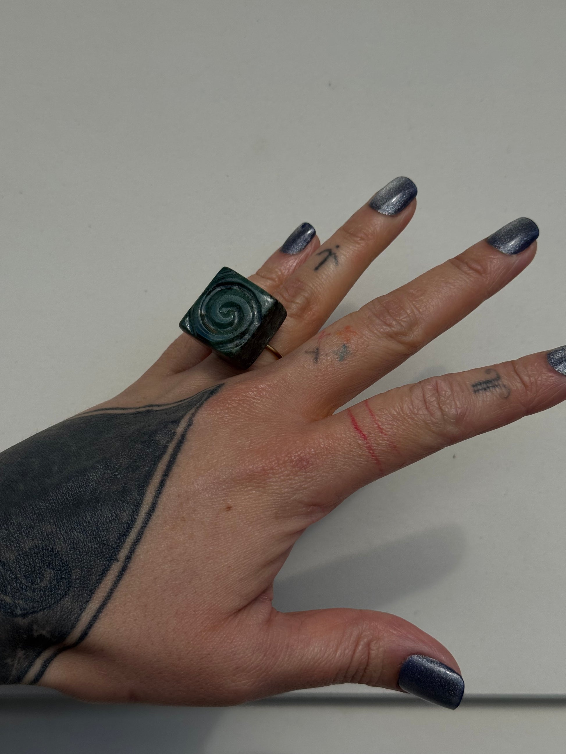 Stainless Steel PVD coated ring bands adorned with pounamu ethically sourced from Te Waipounamu.