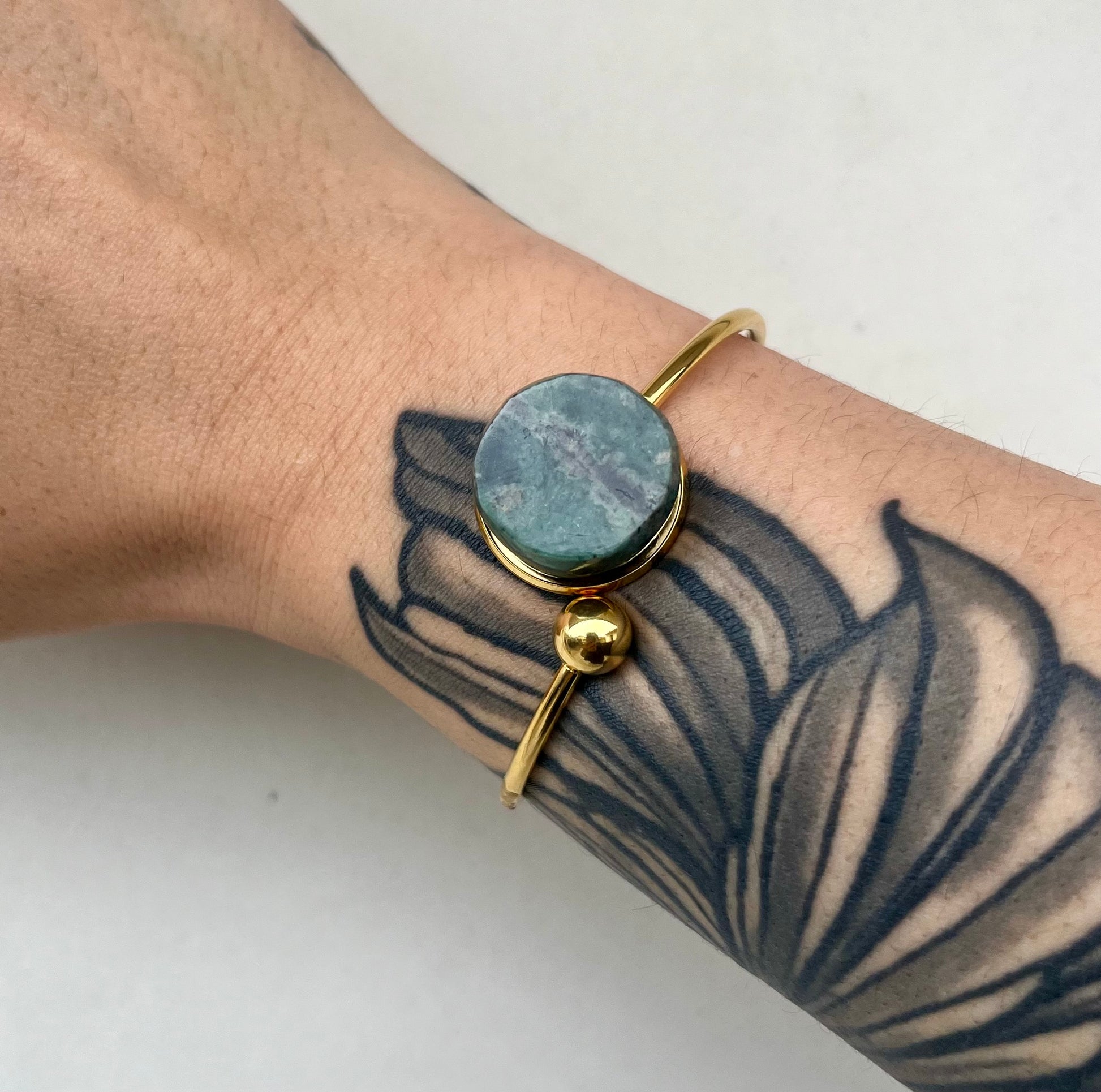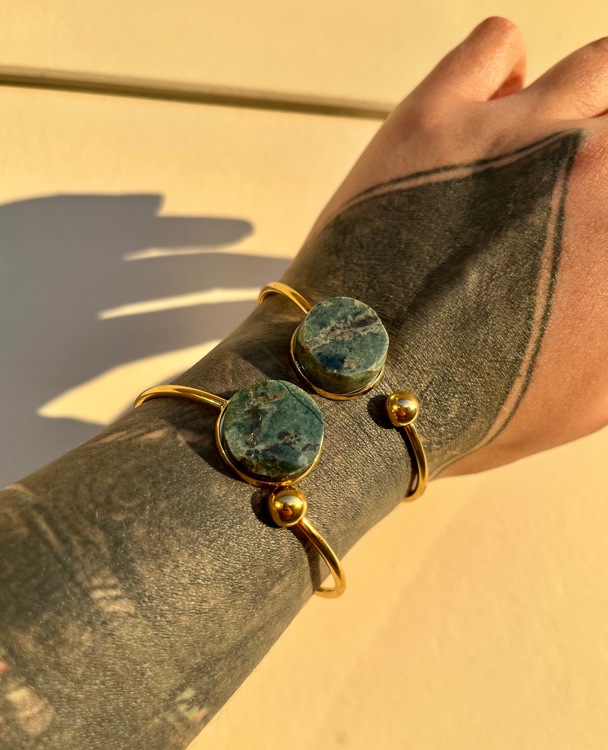 • Hand carved NZ Pounamu porowhita roughly 19mm in diameter set in 18k gold plated adjustable kōmore