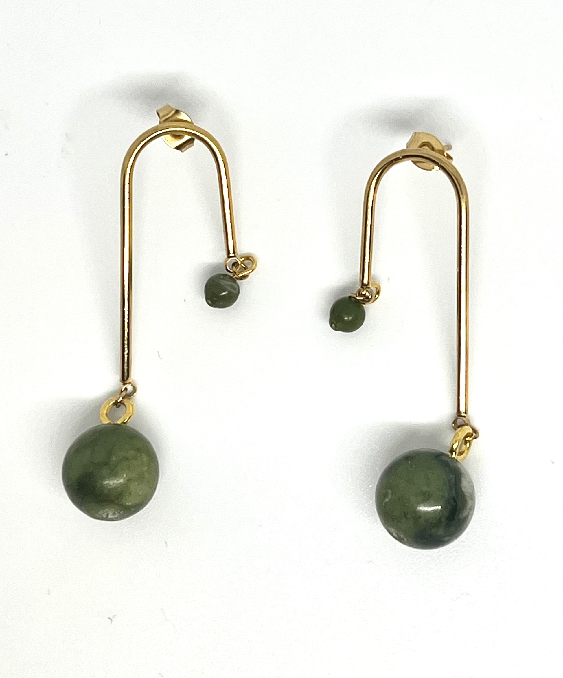 18k gold plates double hanger stud with 4mm & 12mm Pounamu ball