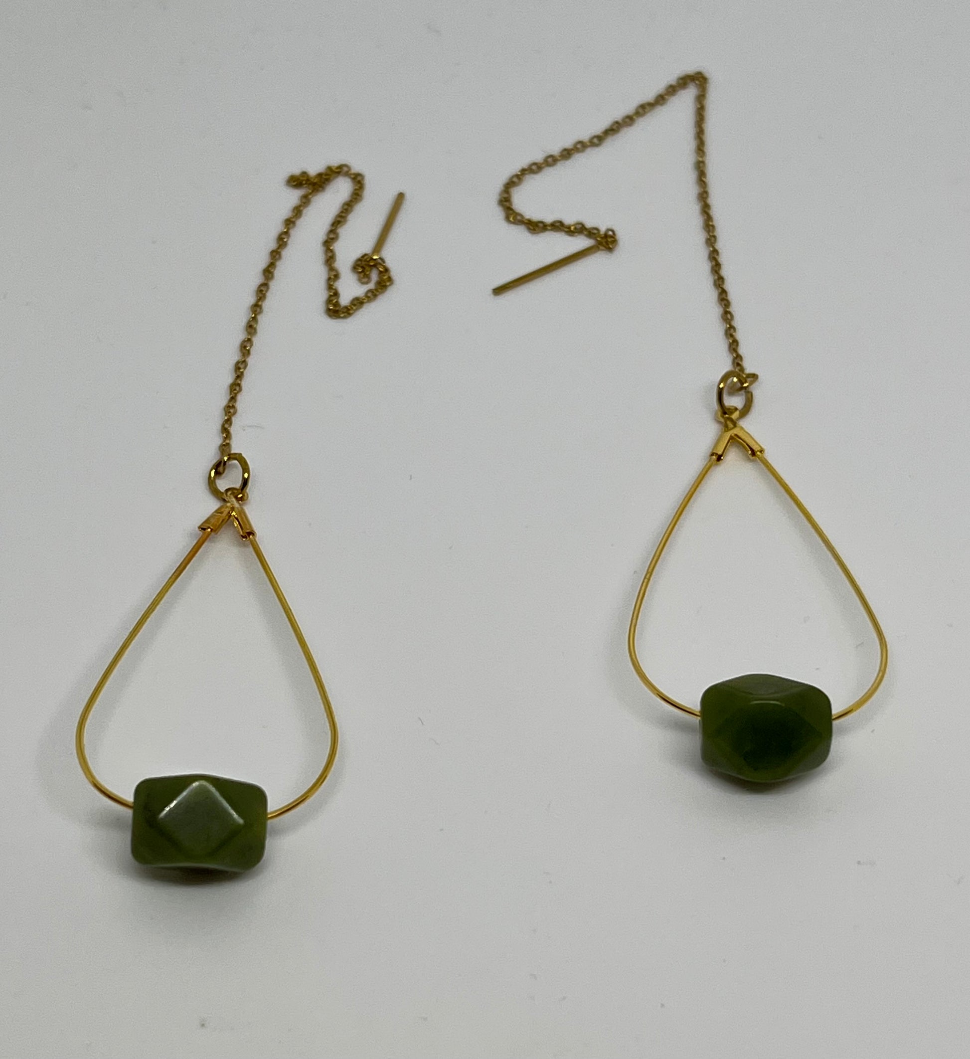 • 8X11mm Faceted Pounamu set on 18k gold plated ring & 18k gold plated 14cm thread type earring