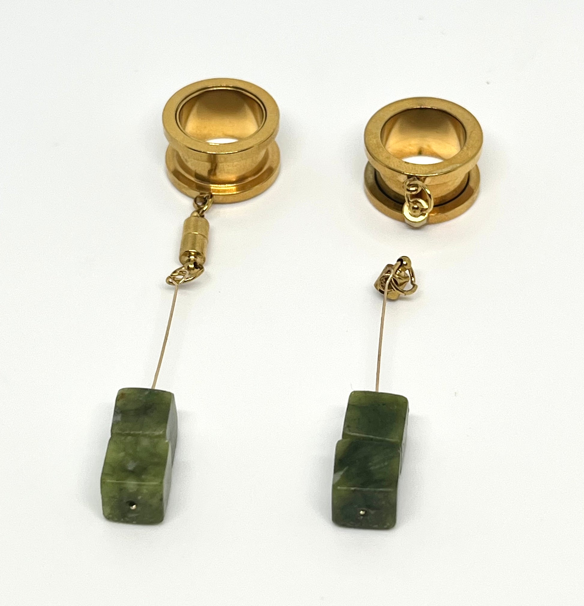 18k gold plated 16mm gauge stretcher threaded with approx 8mm NZ Pounamu pūtoro Pieces