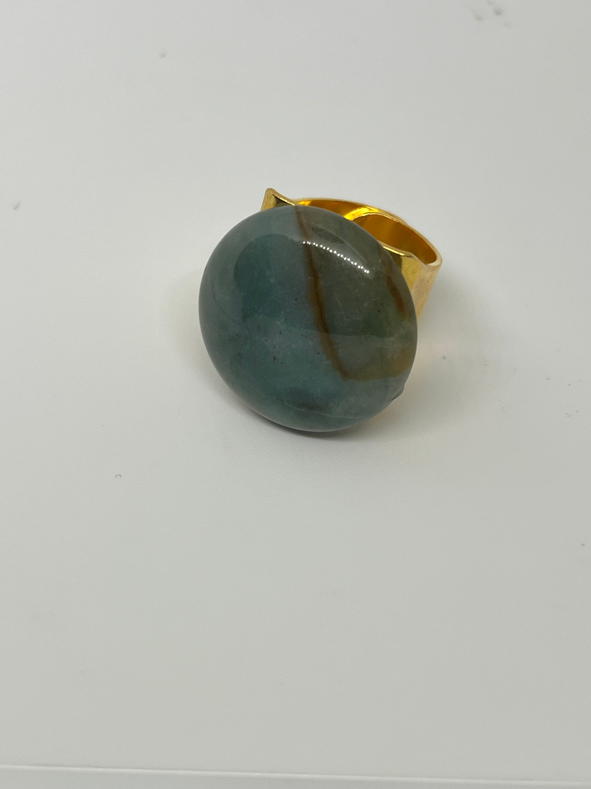 • 18k gold plated adjustable ‘signet’ style ring base adorned with African Jade Porowhita